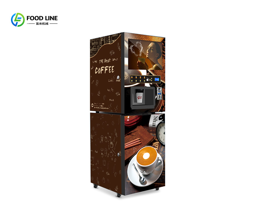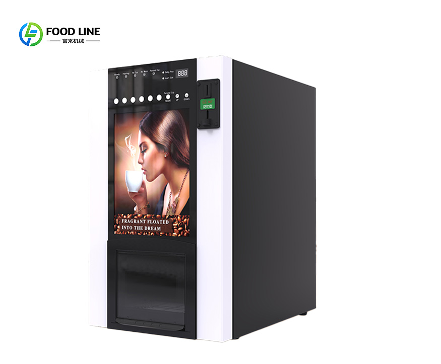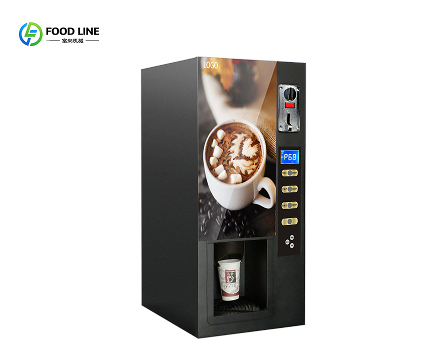 Foodline Machinery offers sustainable office beverage solution: multi-drink smart machine with coffee, tea & hot chocolate, featuring coin payment & auto cup dispenser for Modern Workplace.