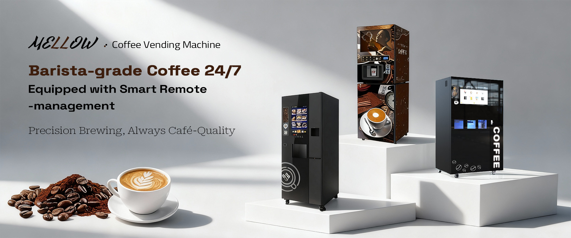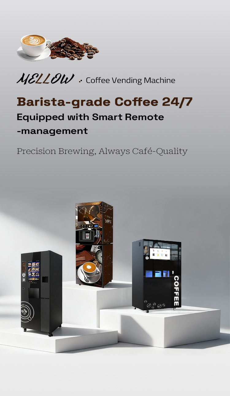 This machine operates as a compact, unattended 24/7 café station. It delivers freshly brewed coffee in about 60 seconds, featuring a large storage for ingredients. Coffee is produced automatically with professional brewing technology. The user-friendly touchscreen supports multiple payment methods to boost your business growth.
