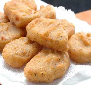 The outer layer is coated with breadcrumbs/bread crumbs to create a crispy texture and a good finished product appearance.