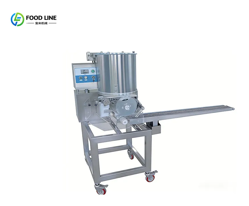 Hamburger Patty forming machine is a device used to make hamburger patties, usually used in the food processing industry or food service industry. It can automatically or semi-automatically make Patty raw materials into hamburger patties according to specific shapes and sizes, improving production efficiency and maintaining product consistency.
