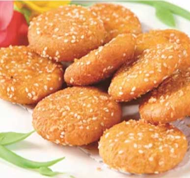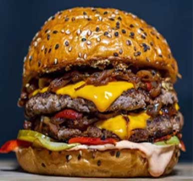 The shaped meat patties are deep-fried at high temperatures to cook them, lock in the juices, and set their flavor.