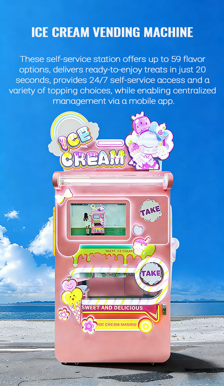 One machine is equivalent to a smart, unmanned ice cream shop, occupying only one square meter of space. It can create 59 flavors, one type of milk base, three types of jam, and three types of toppings, with 24-hour fully automatic freshness preservation and sterilization. It supports multiple payment methods and dispenses a cup in as little as 25 seconds! Marketing campaigns can be easily launched, such as buy-one-get-one-free or buy-three-get-one-free promotions.Powerful features, enabling you to recoup your investment in 3-4 months.