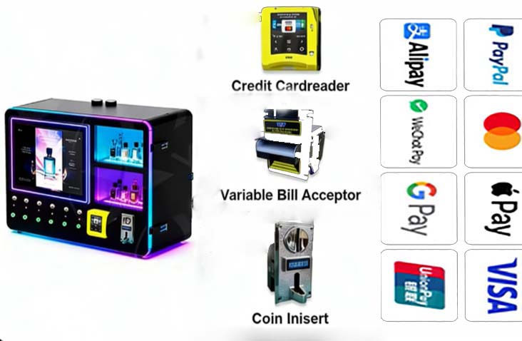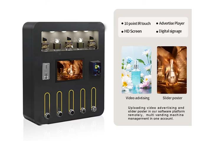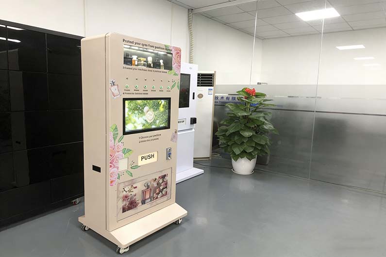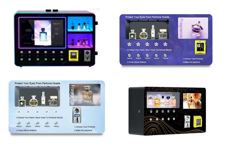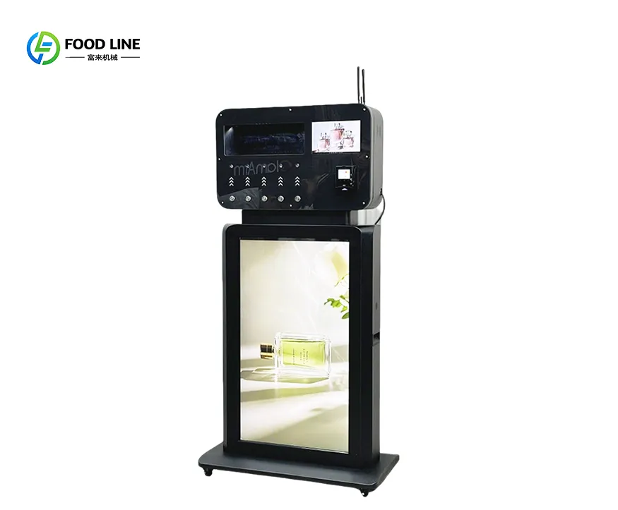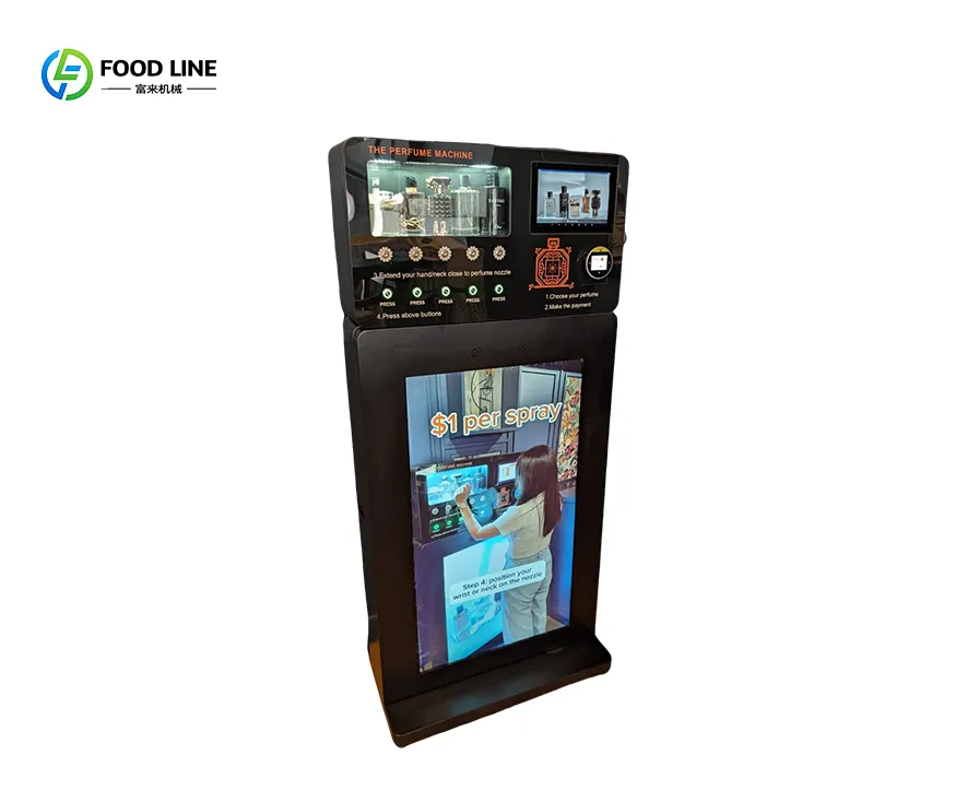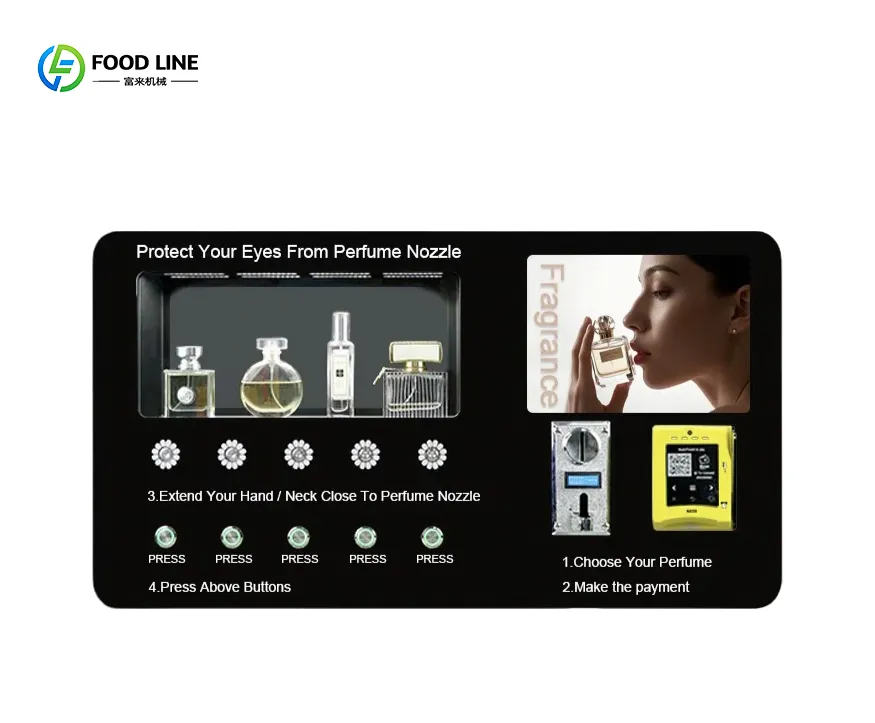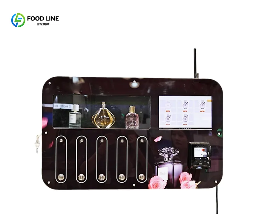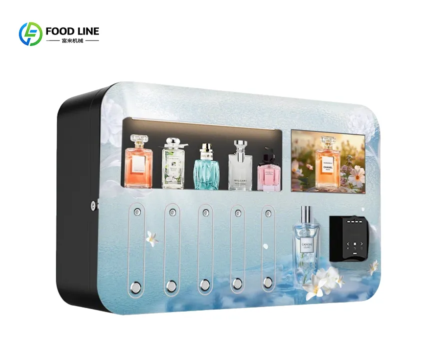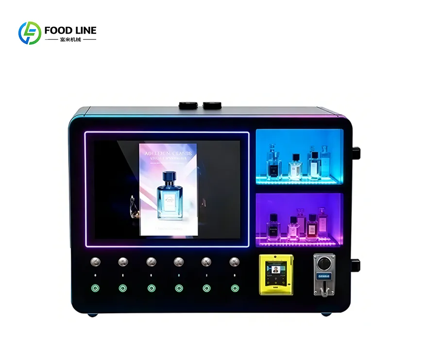 Foodline Machinery's perfume vending machines are innovative and convenient, equipped with 6-10 nozzles to dispense different scents, meeting diverse consumer needs.